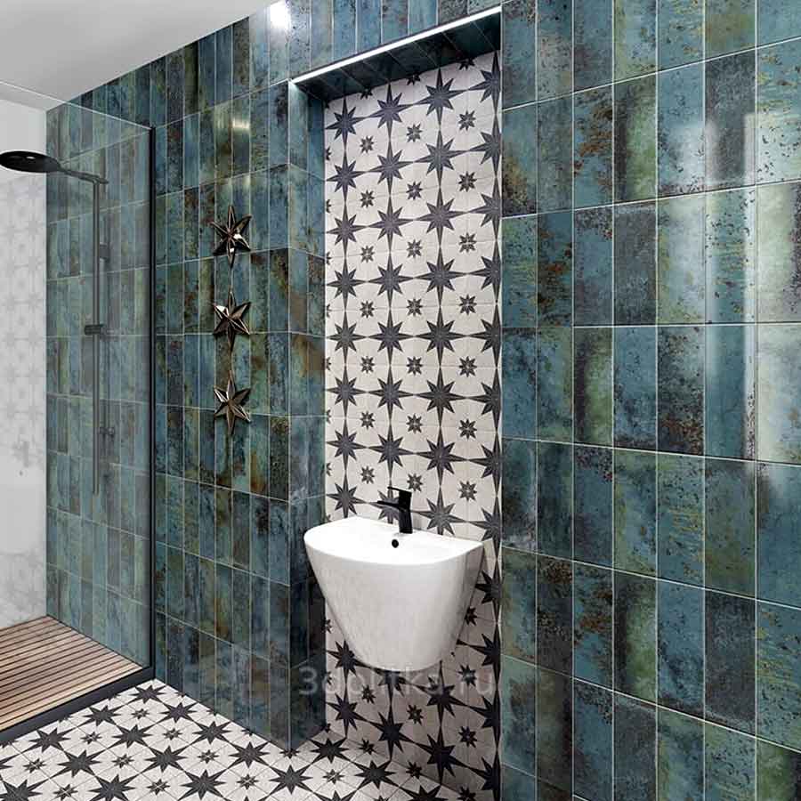 Especially the white ones. This is a case where a good idea was exploited so relentlessly that everyone grew tired of it. Over the course of a few years, tiles of this particular style and pattern flooded both private and public bathrooms. If you don’t want to join the ranks of the cookie-cutter crowd, choose something different. It is worth breaking up the white with softer shades: grey, beige. Add a few bright accents. They’ll draw attention away from imperfections and make the interior more dynamic. If you don’t want to join the ranks of the cookie-cutter crowd, choose something different.Mixed Tile Patterns